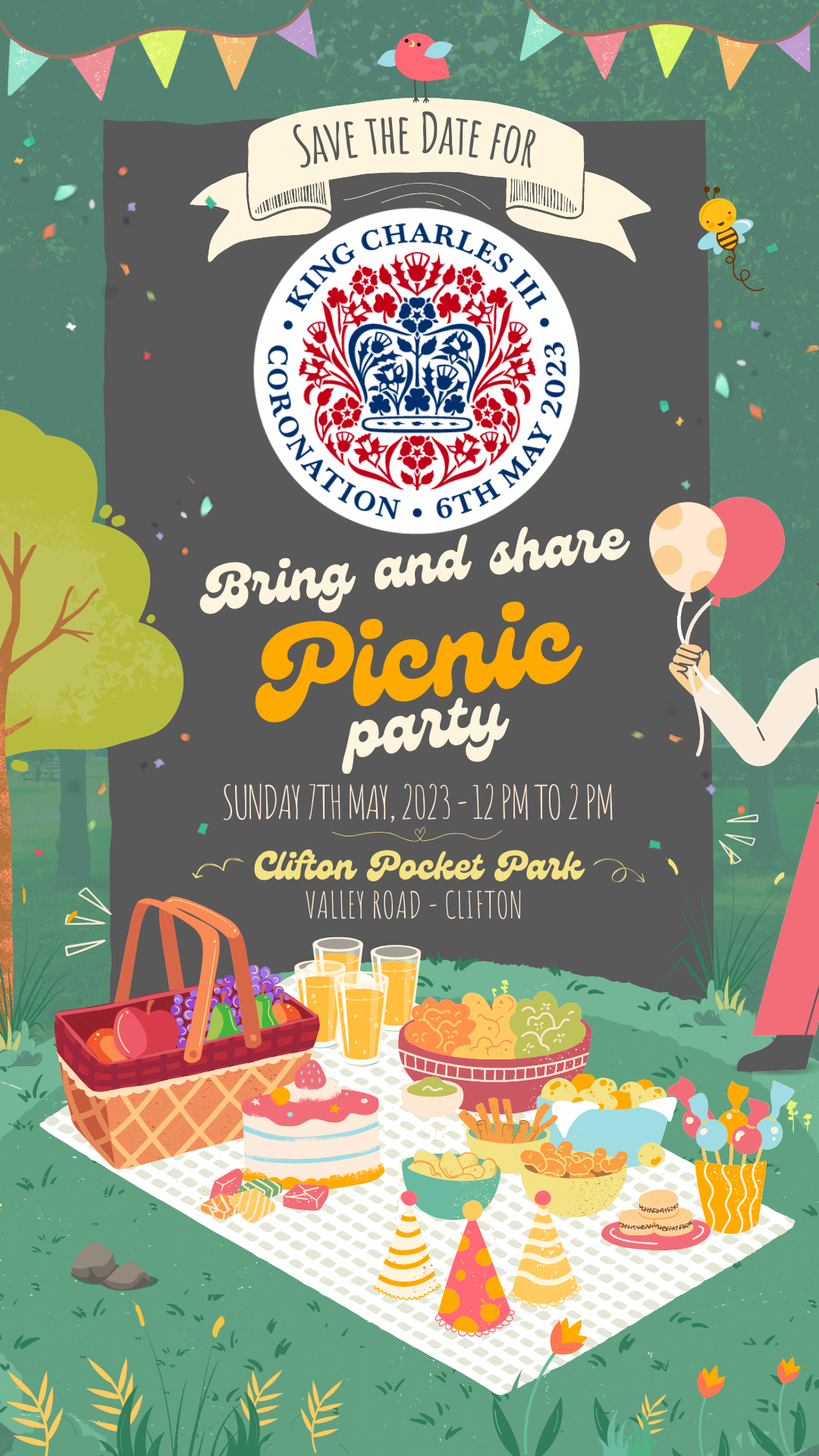 As part of the Coronation Big Lunch celebrations, Clifton is holding a Bring and Share Picnic Party on Sunday the 7th of May 2023.